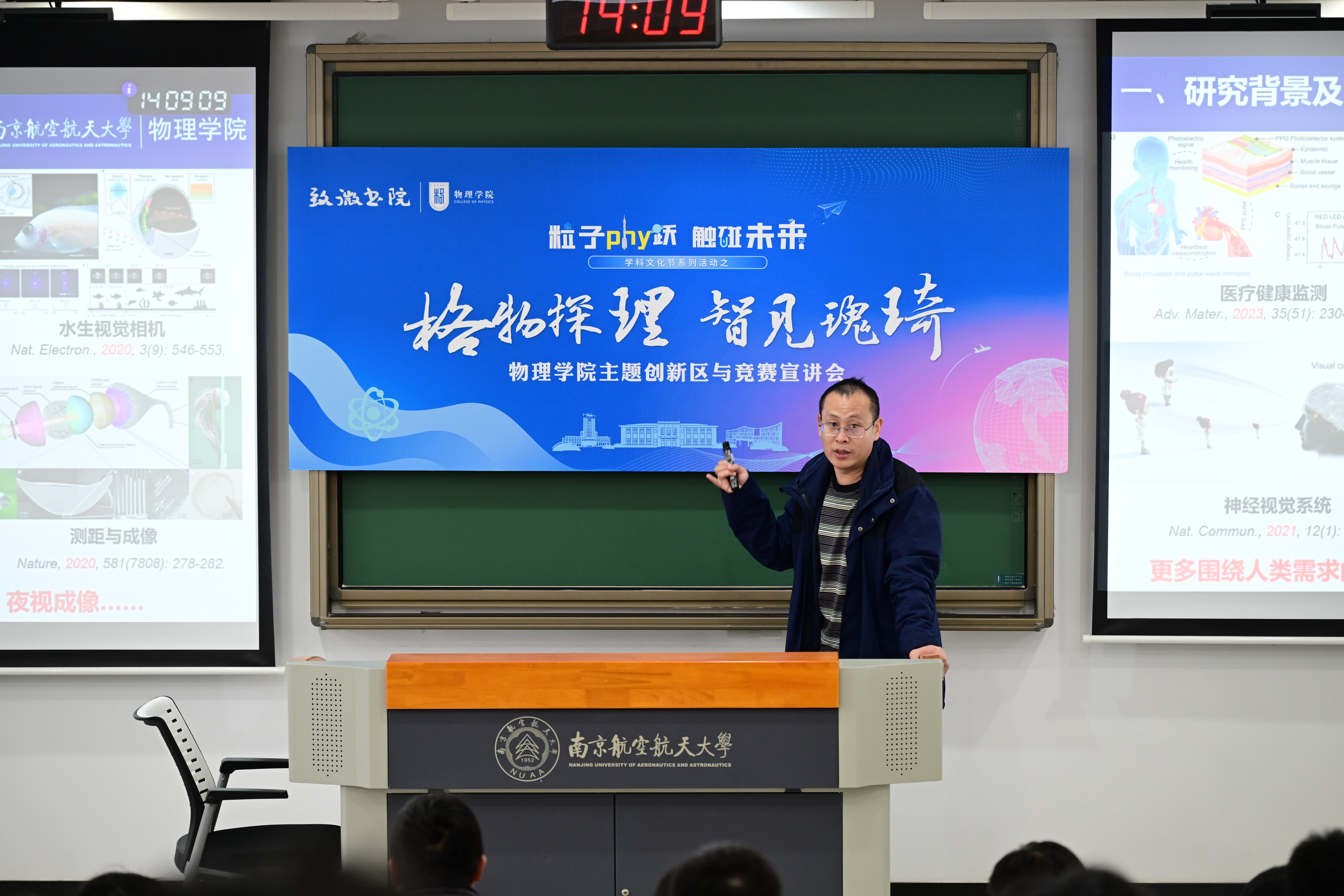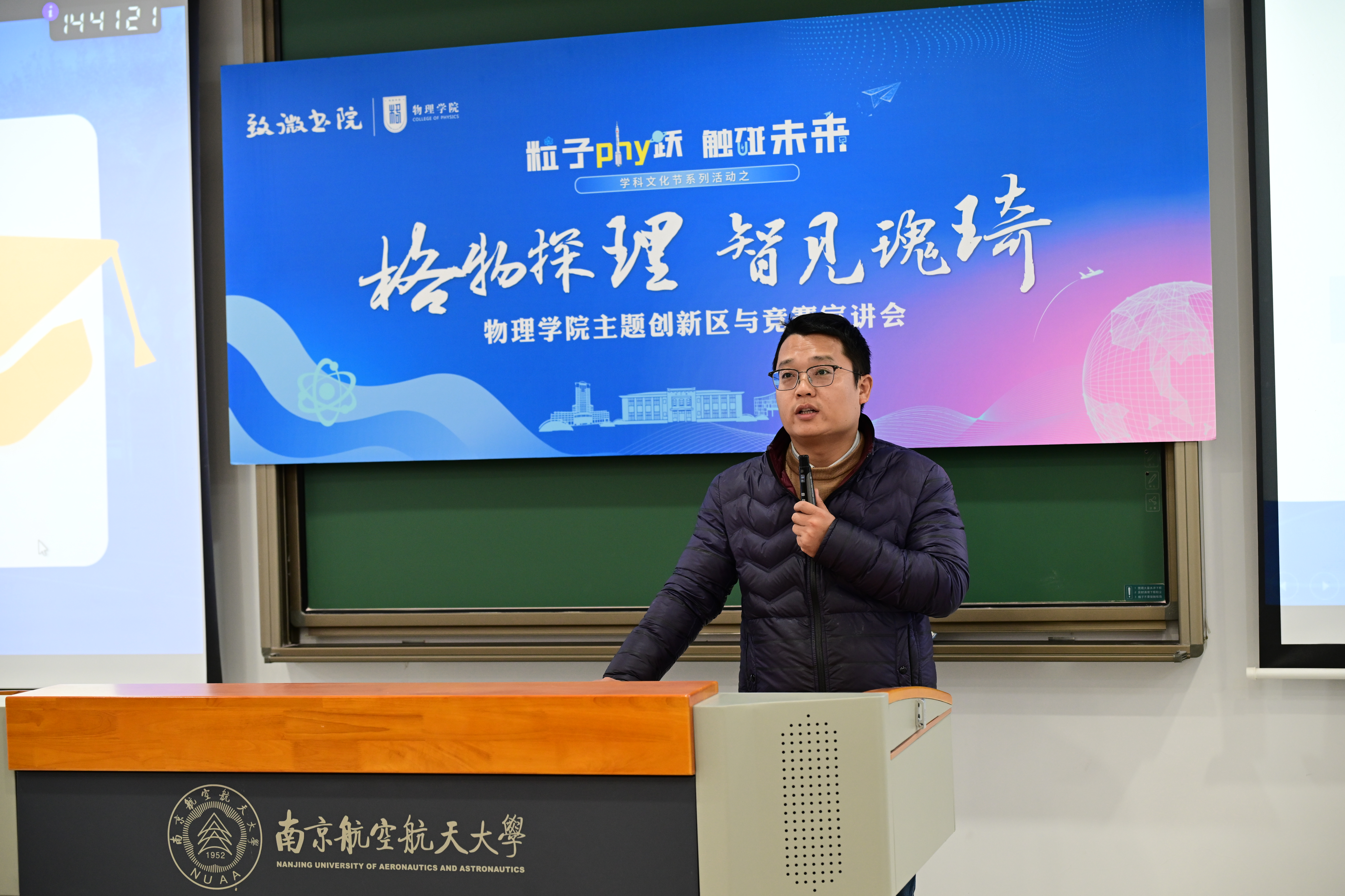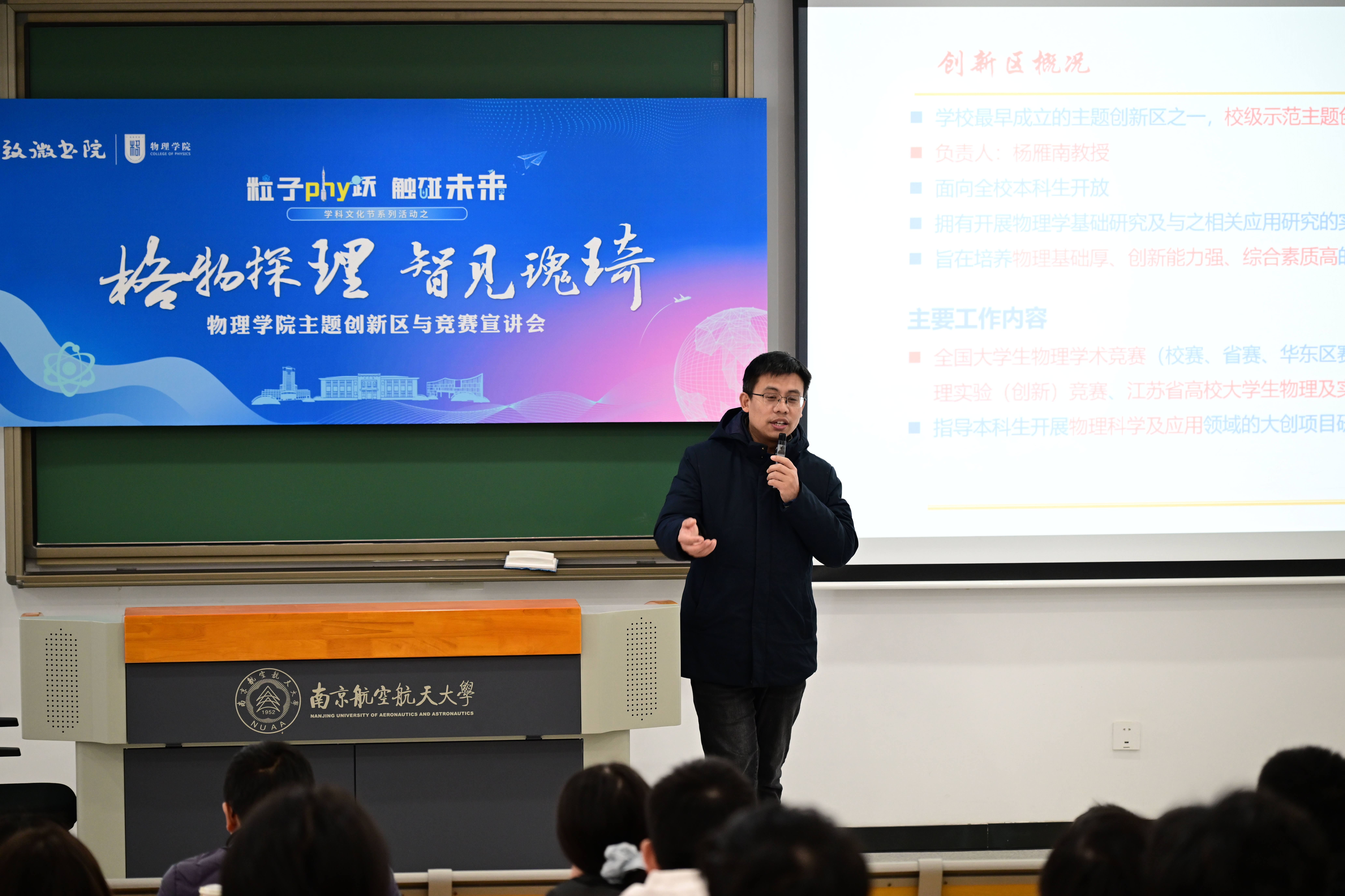 第四届“启智逐梦,智汇青春”天目湖校区大学生科创节于近日盛大开幕,为激发同学的科研兴趣,助力大一同学及时了解国产福利 主题创新区情况,掌握四大学科竞赛核心信息,顺利开启科创征程,国产福利 联合致微书院于12月2日在天目湖校区举办主题创新区与物理竞赛专场宣讲会。牧星国产福利 致微书院院长文杰、国产福利 副院长阚彩侠及国产福利 100余名师生参加本次活动。活动由国产福利 教务员杨一冉主持。