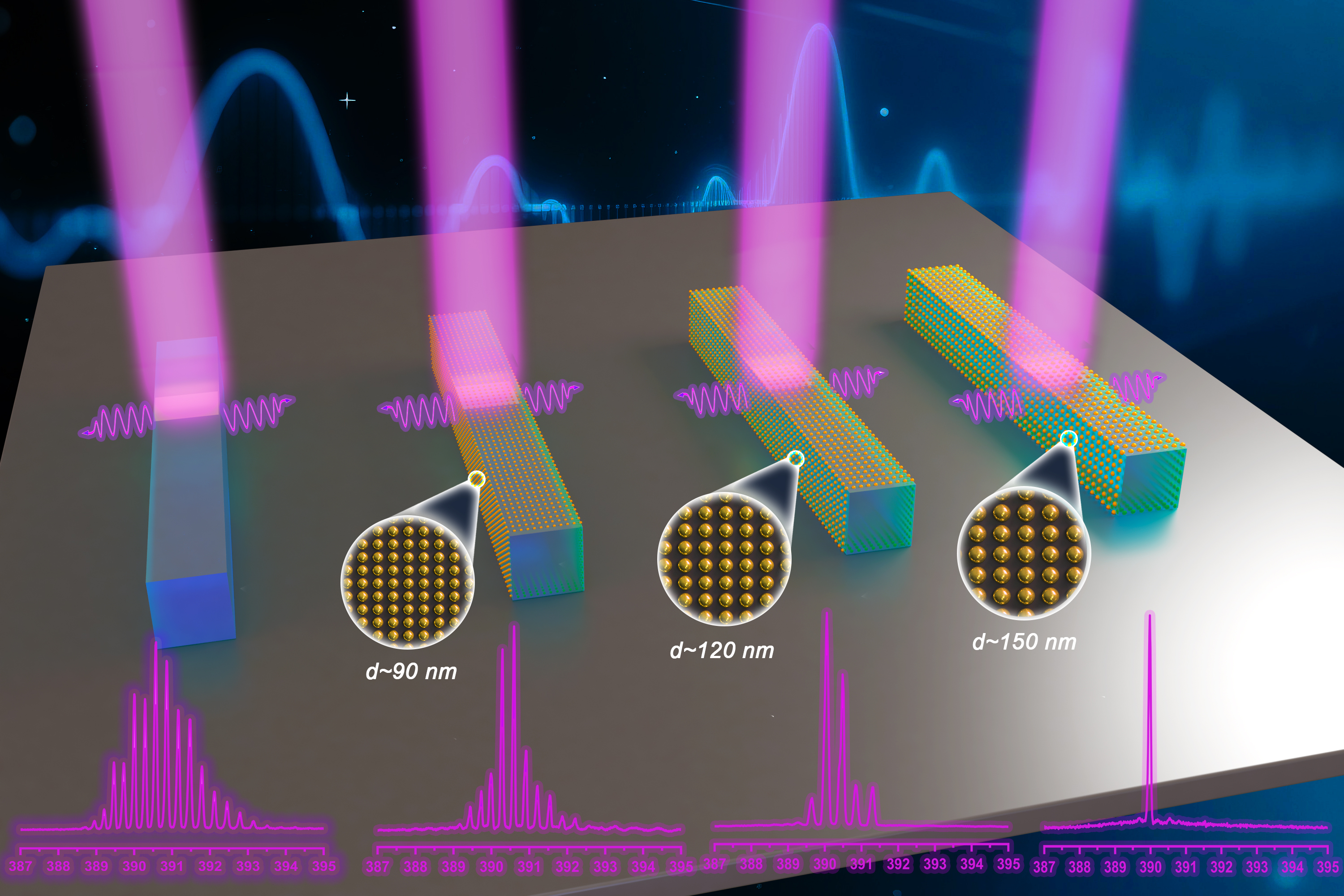 2. 材料与制备创新:发展可精确调控的“磁控溅射-热退火”纳米粒子集成工艺。本研究开发了一种简易、可扩展的制备方法,通过控制磁控溅射时间,可在ZnO:Ga微米线表面实现粒径(90 nm, 120 nm, 150 nm)精确可控且分布均匀的PtNPs修饰。该工艺避免了复杂的纳米光刻或异质外延,保持了微腔结构的完整性,为大规模、可重复制备高性能等离子体激光器件提供了可靠的技术路径。