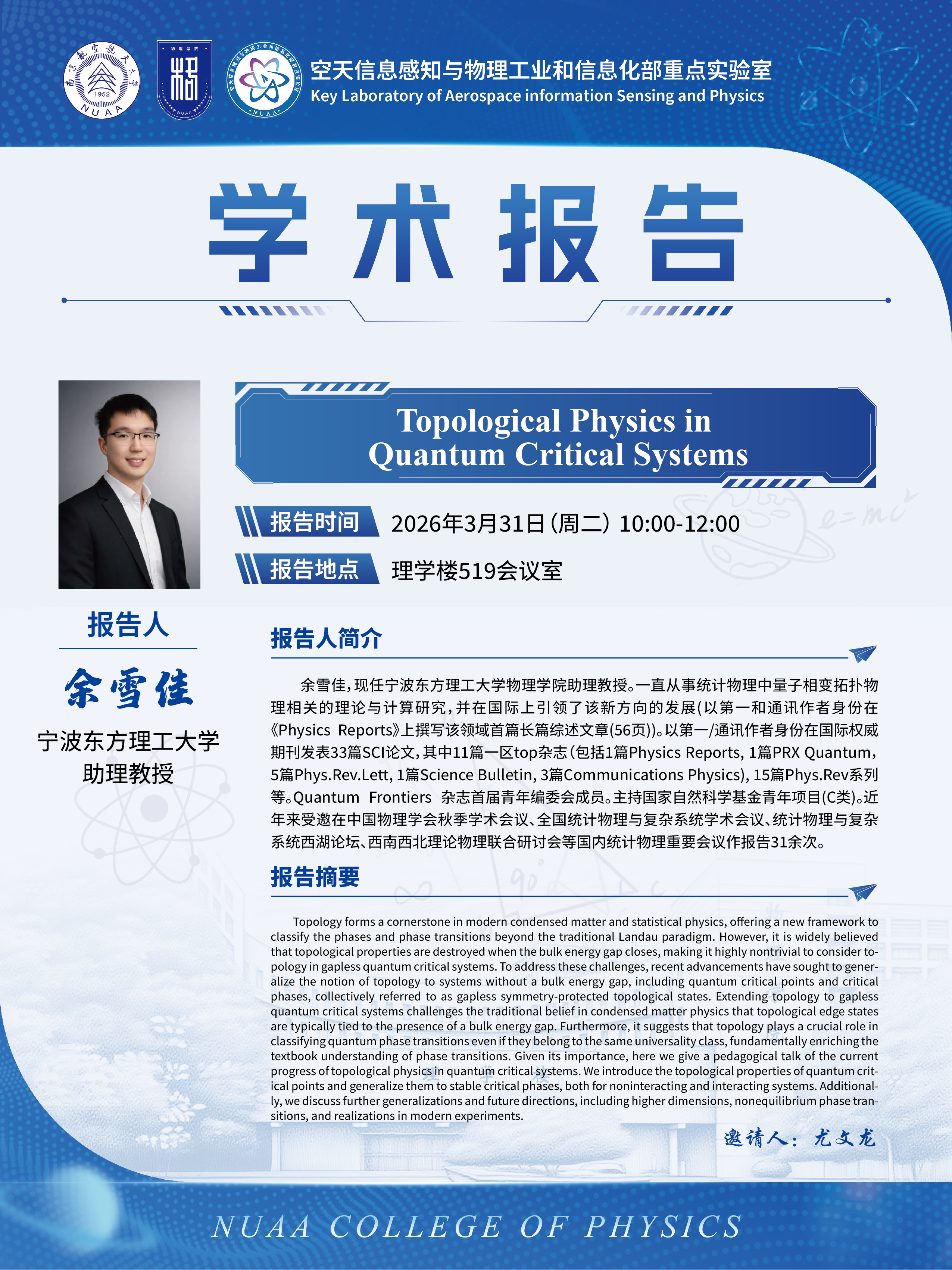 审核:Topological Physics in Quantum Critical Systems